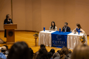 In late October, Roxanne spoke on a panel at Cottey College that brought together changemakers who are taking action against the dark side of AI. Roxanne was joined by panelists Larry J. Cohen, writer, producer and council member for the Writers Guild of America, East, where he serves as the co-chair of the A.I. Task Force, and Melissa Hutchins, Founder & CEO of Certifi AI, a technology company developing AI-powered deepfake detection and digital identity protection solutions. The three panelists discussed AI’s negative impact on creative and technical fields, as well as how this technology has put people in danger.